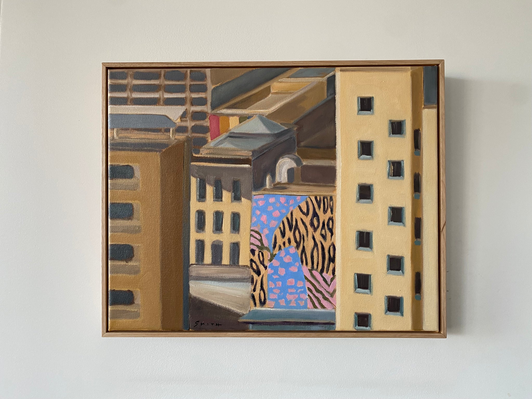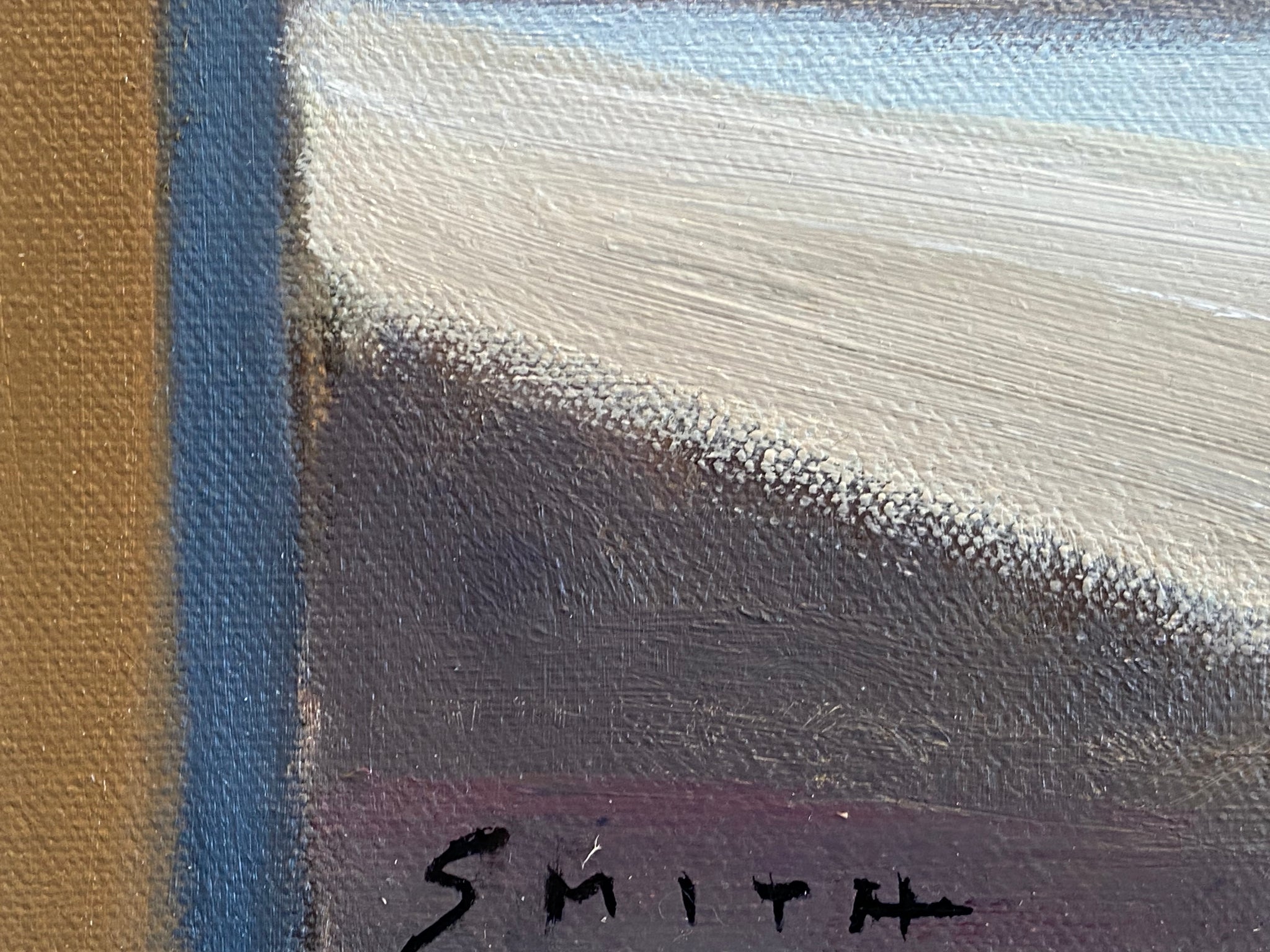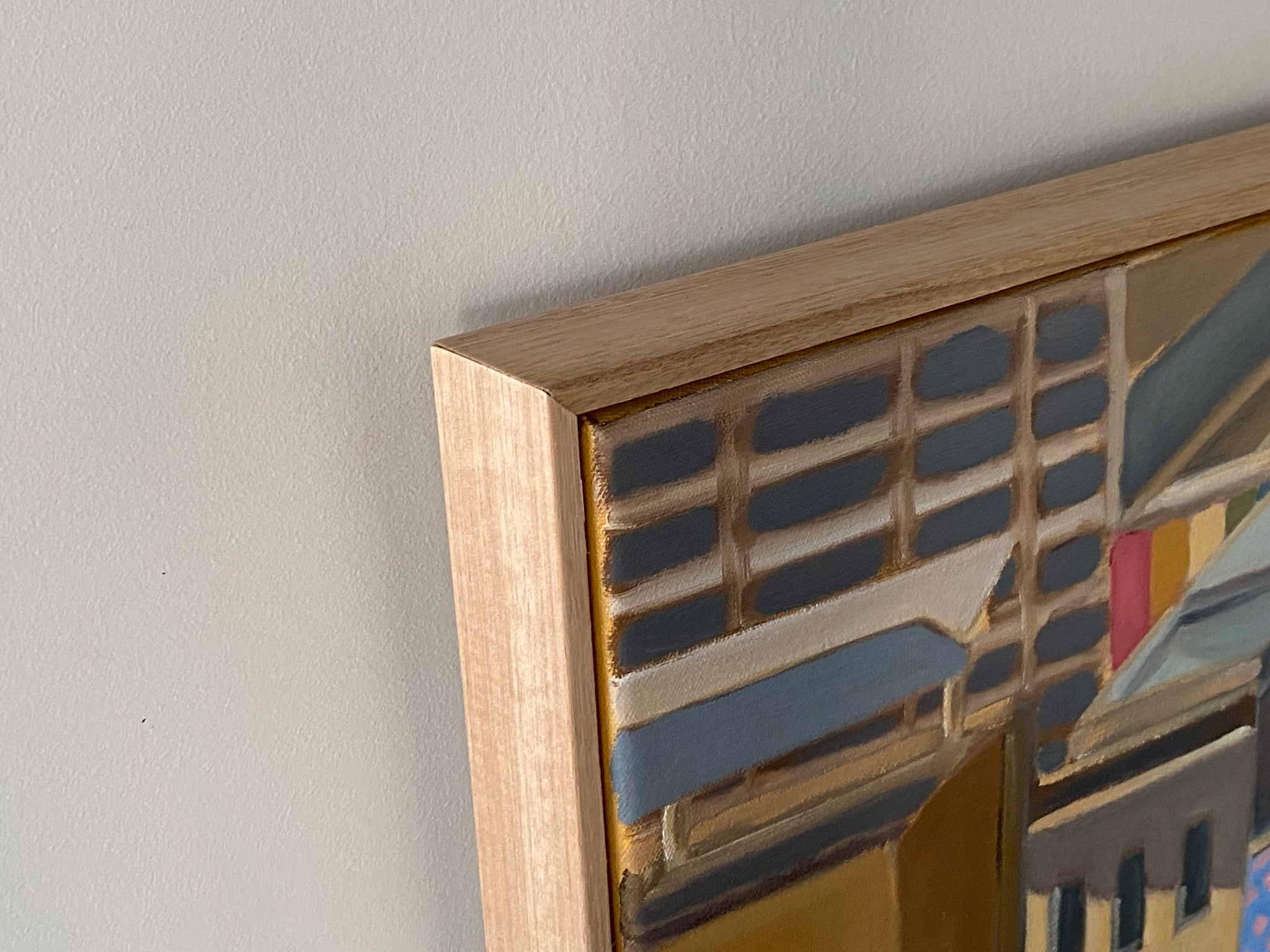 This painting is framed with a Tasmanian oak float frame, hand made by the artist.