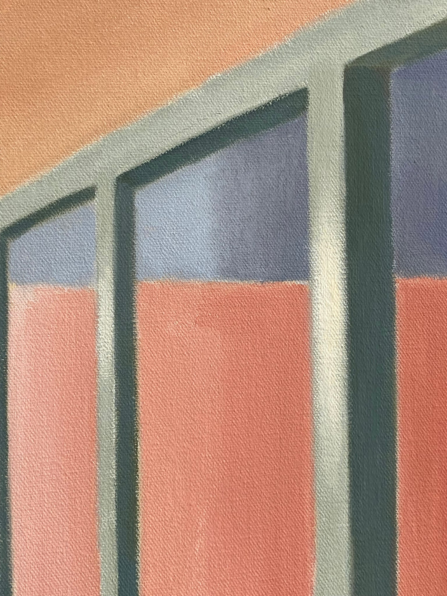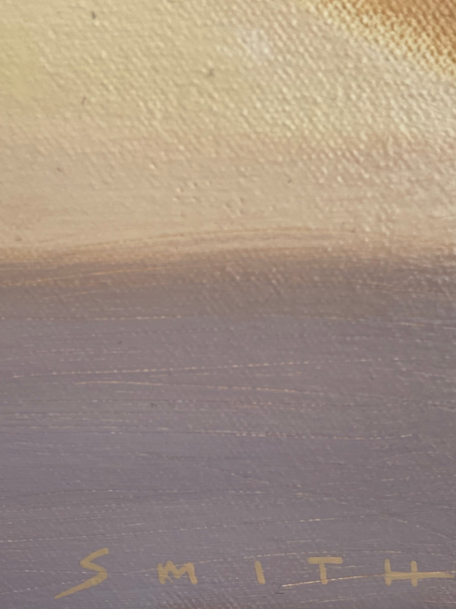 This painting is framed with a Tasmanian oak float frame, hand made by the artist.