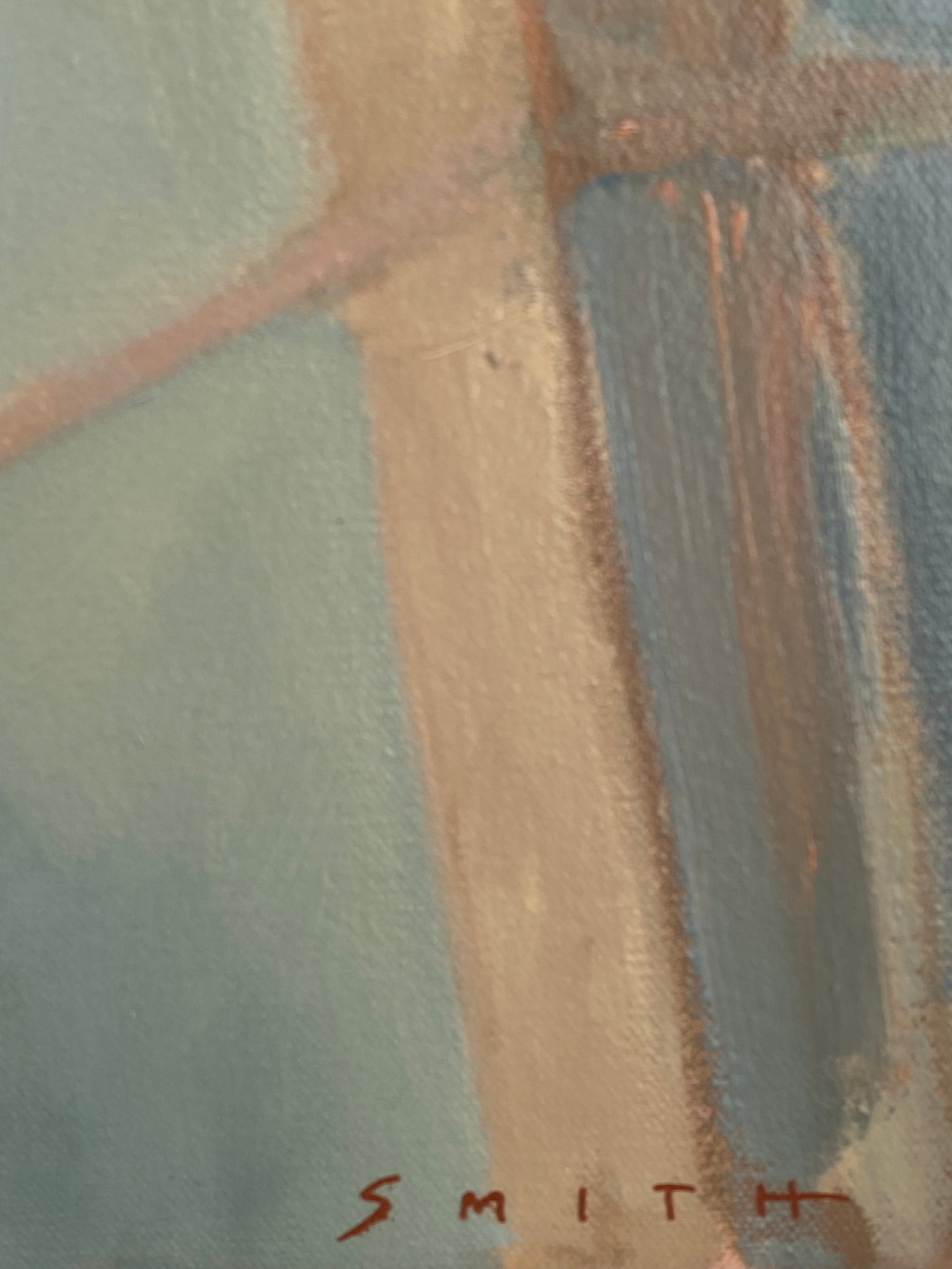 This painting is framed with a Tasmanian oak float frame, hand made by the artist.